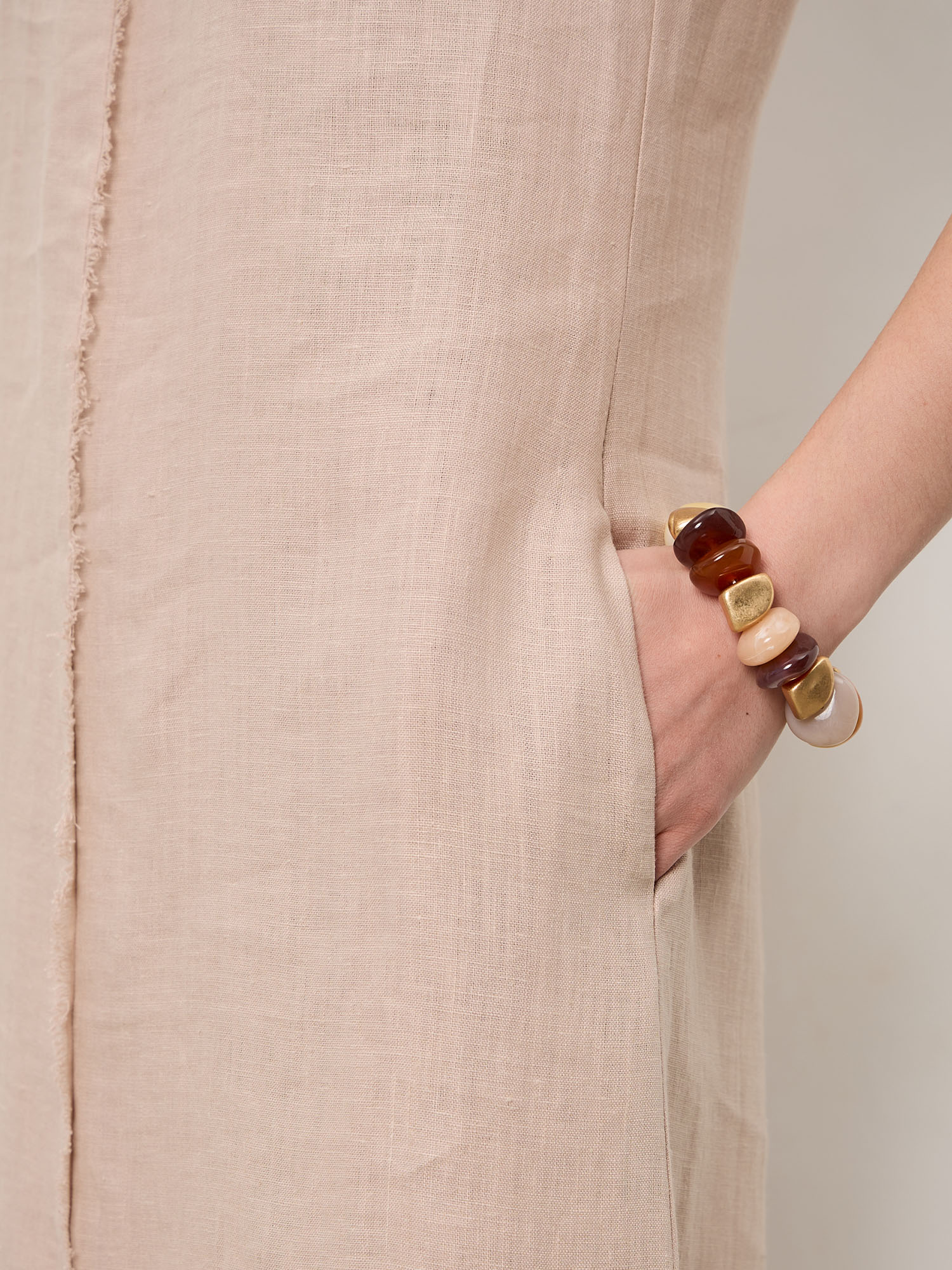 Натуральная ткань с приятной фактурой, которая обеспечивает комфорт, хорошую воздухопроницаемость и лёгкость в носке. Материал мягко драпируется и сохраняет форму изделия.