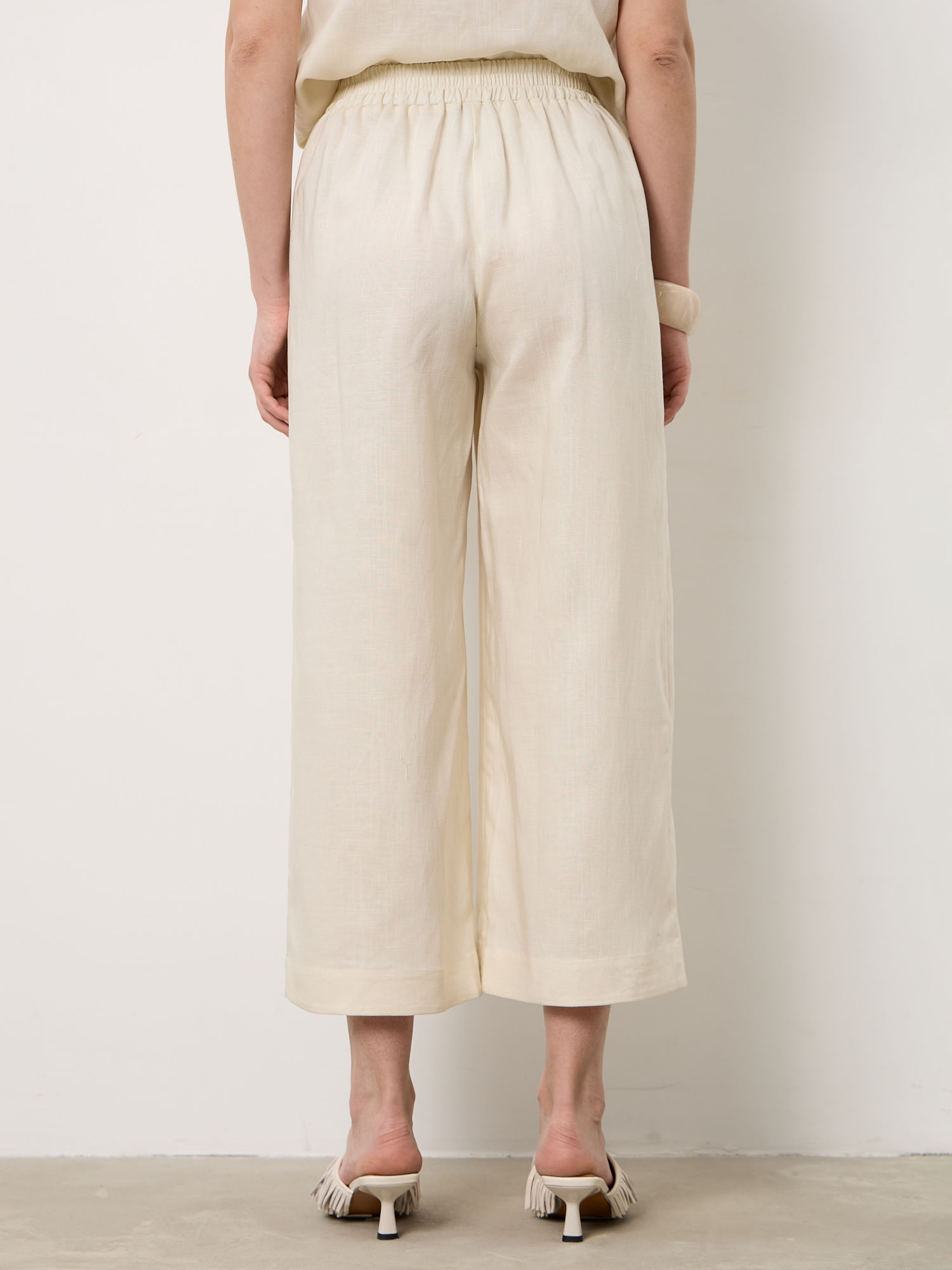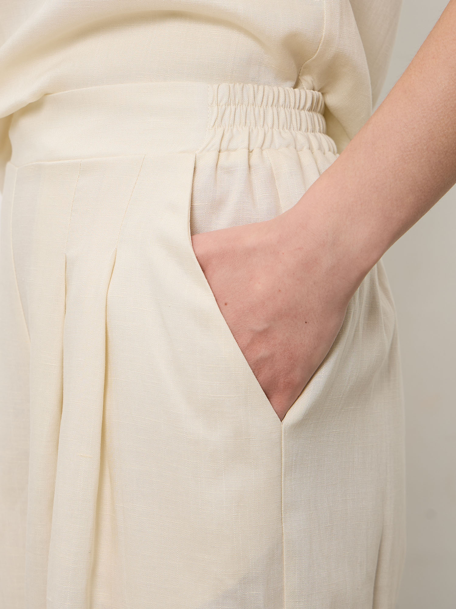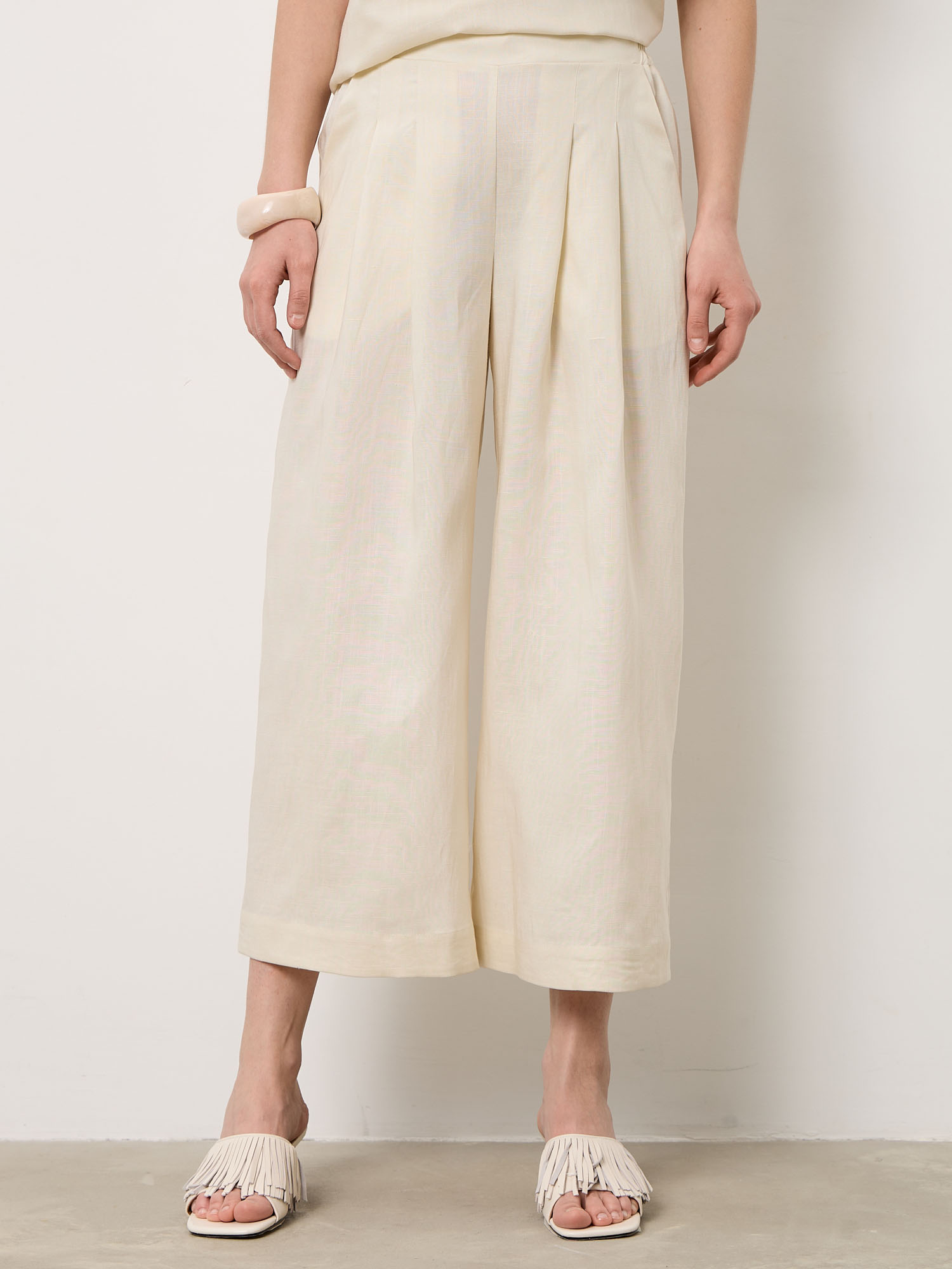 Кюлоты из тенселя 5012266 в сливочном оттенке — элегантная и современная модель для создания лёгких и стильных образов. Свободный крой и мягкая струящаяся ткань формируют красивый силуэт и обеспечивают комфорт в течение всего дня. Кюлоты легко сочетаются с блузами, топами, жакетами и трикотажем, создавая утончённые повседневные и деловые комплекты.