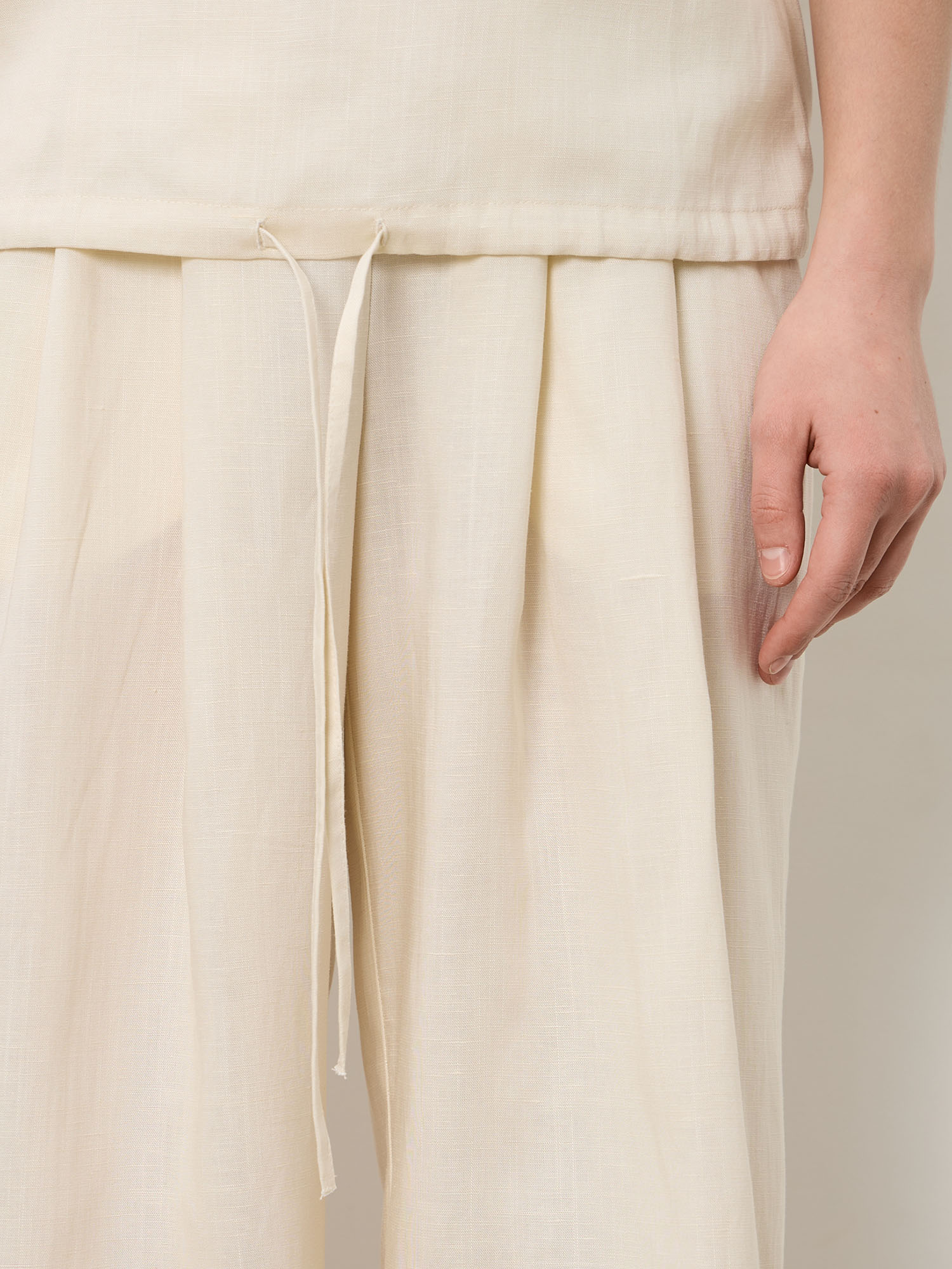 70% тенсель, 30% лен. Натуральная смесовая ткань отличается мягкостью, лёгкостью и воздухопроницаемостью. Тенсель придаёт материалу гладкость и шелковистую текстуру, а лен обеспечивает прочность и естественную фактуру ткани.