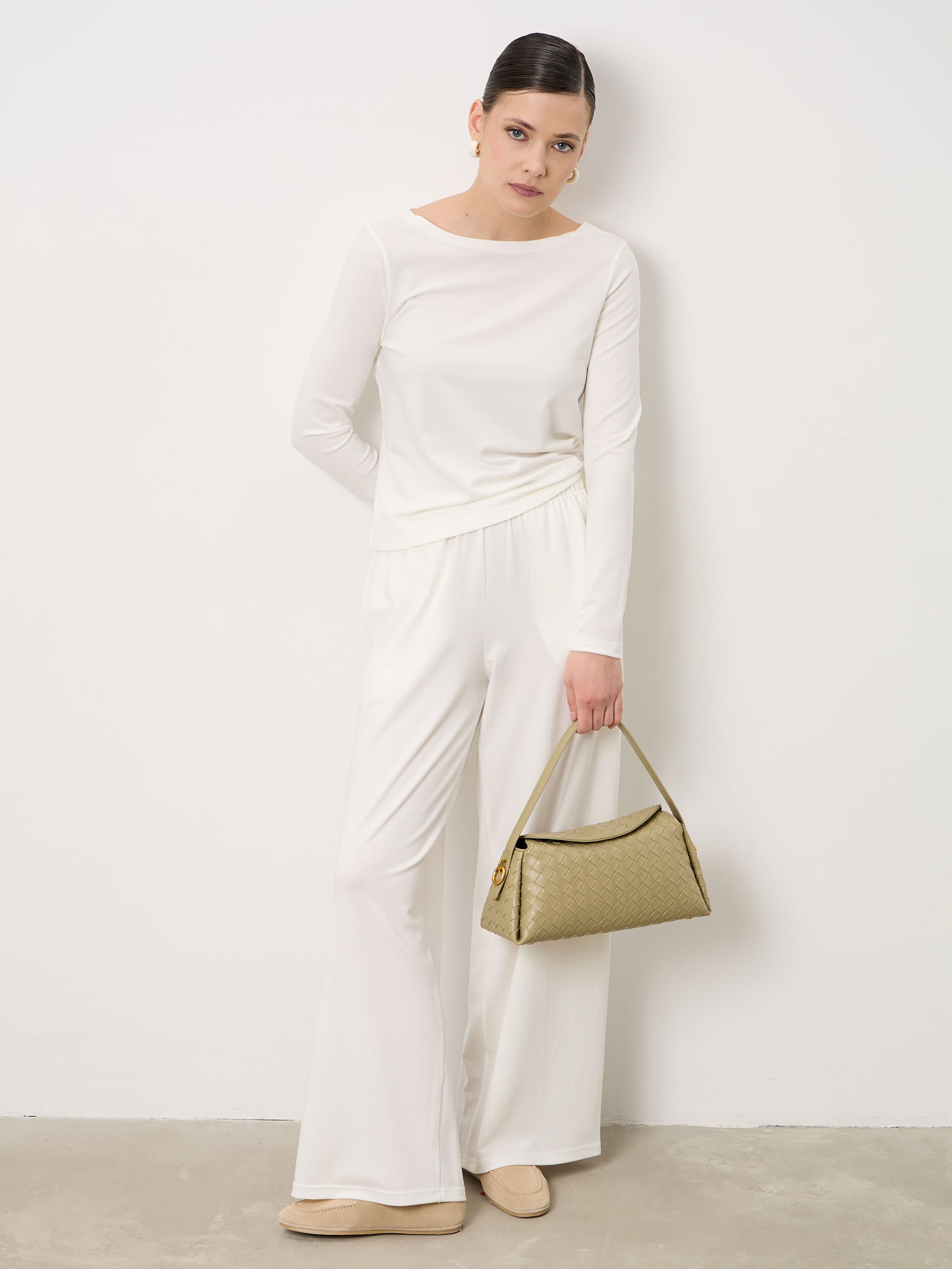 Молочный — светлый и утончённый оттенок, который придаёт образу лёгкость и свежесть. Легко сочетается с пастельными, бежевыми, серыми и контрастными тёмными цветами.