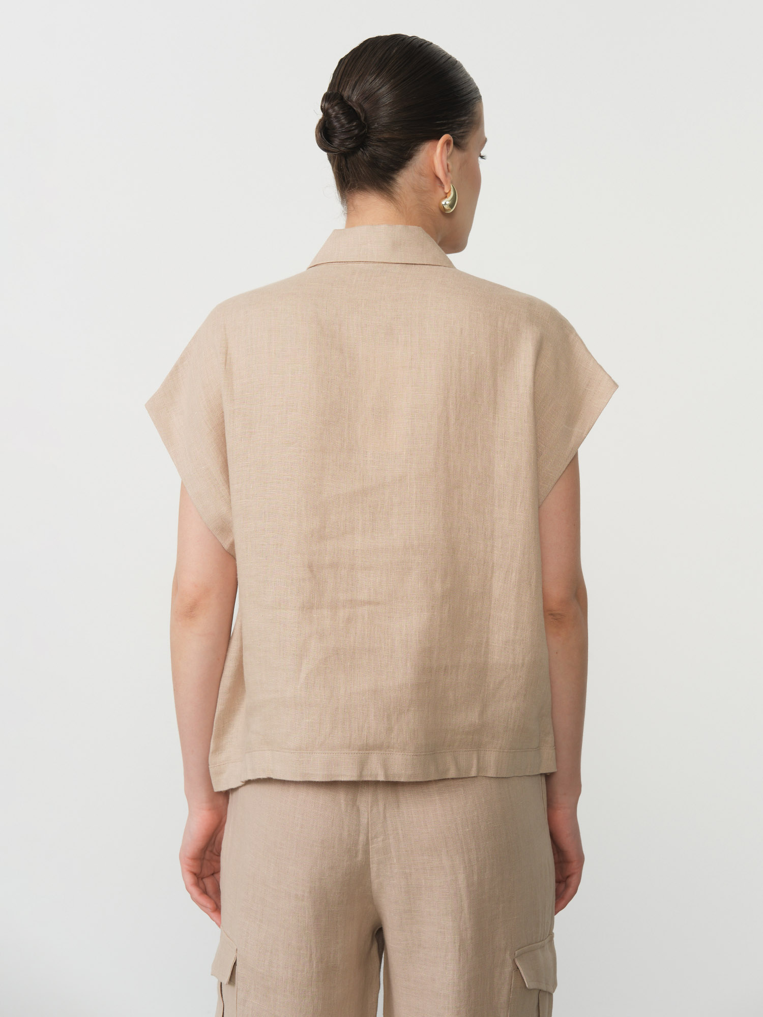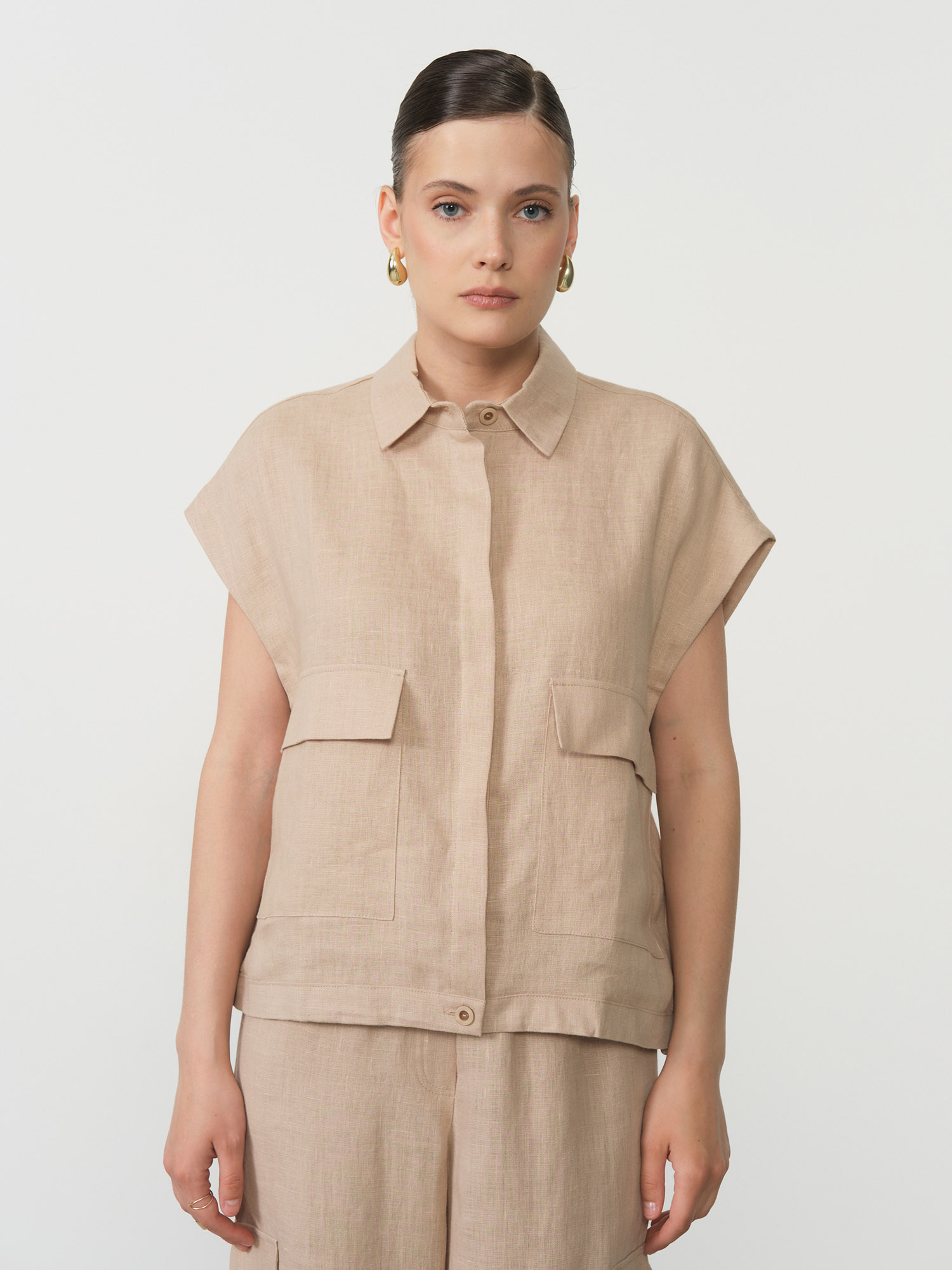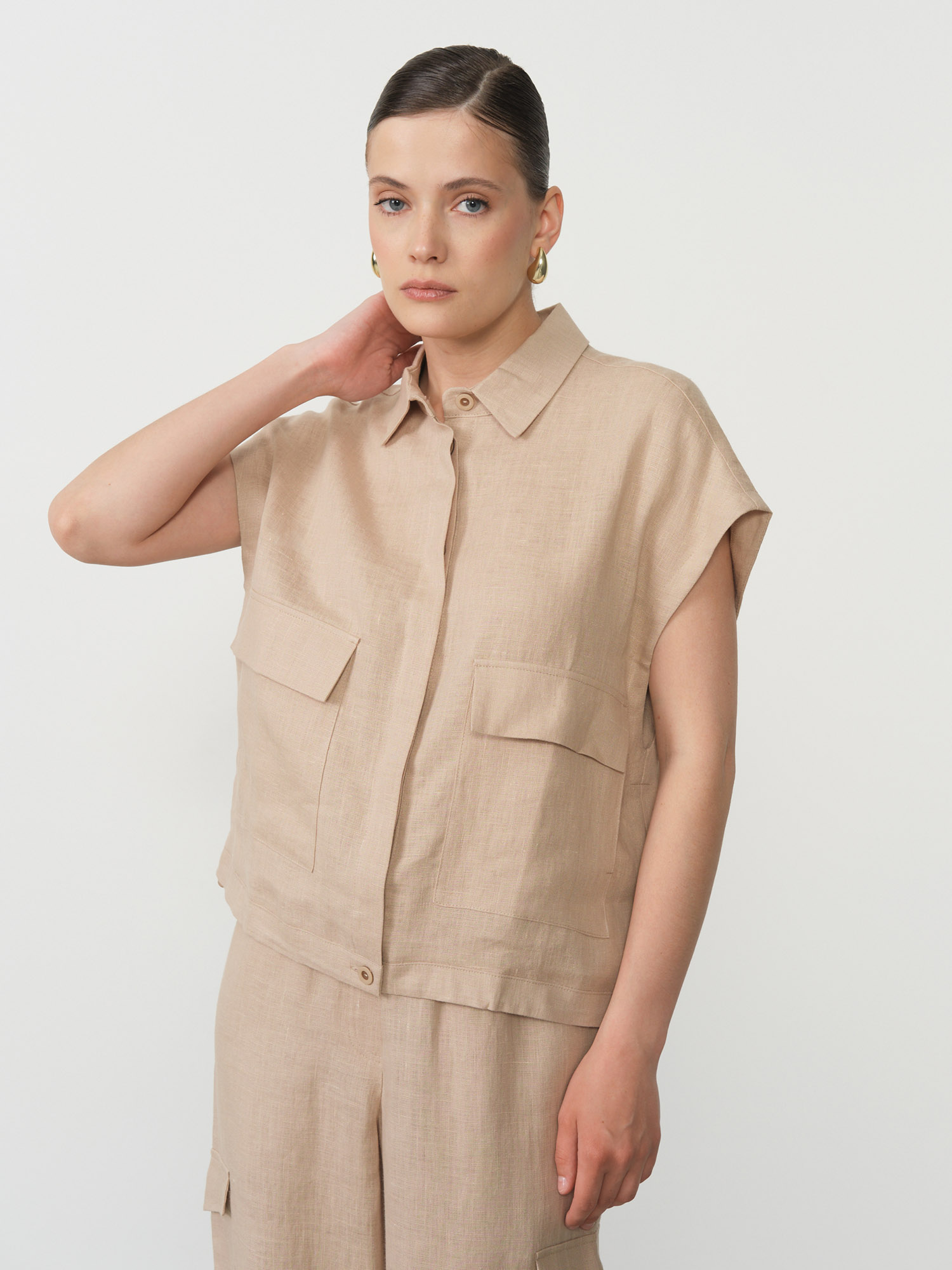 Женская блузка из льна — стильная и функциональная модель в современном утилитарном стиле. Идеально подходит для создания лёгких и актуальных летних образов.