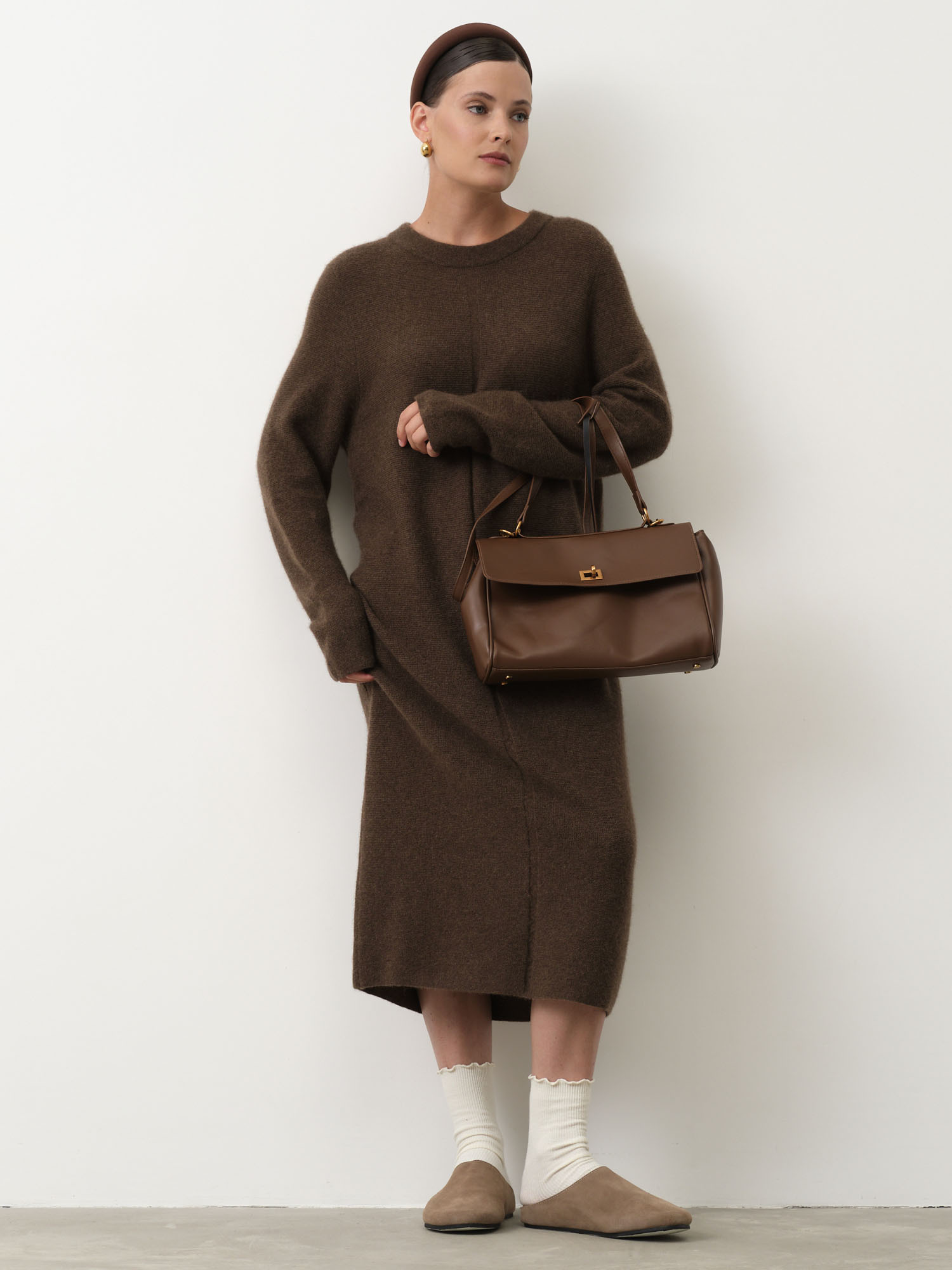 Платье идеально сочетается с высокими сапогами, ботильонами или лоферами. Подходит для повседневных и офисных образов, легко комбинируется с верхней одеждой и аксессуарами.